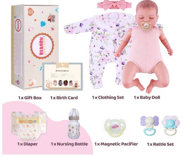 En total son 8 piezas de accesorios para muñecas bebé renacidas capaces de mejorar la experiencia de juego para los niños.