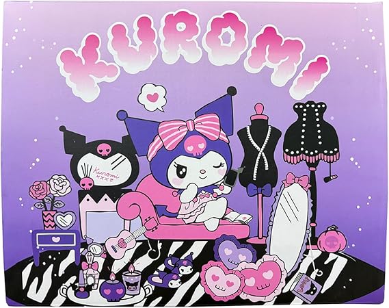 ✔ 24 sorpresas temáticas de Kuromi: medias, pantuflas, llaveros, moños, espejitos, accesorios de cabello, útiles de escritorio y mucho más.
